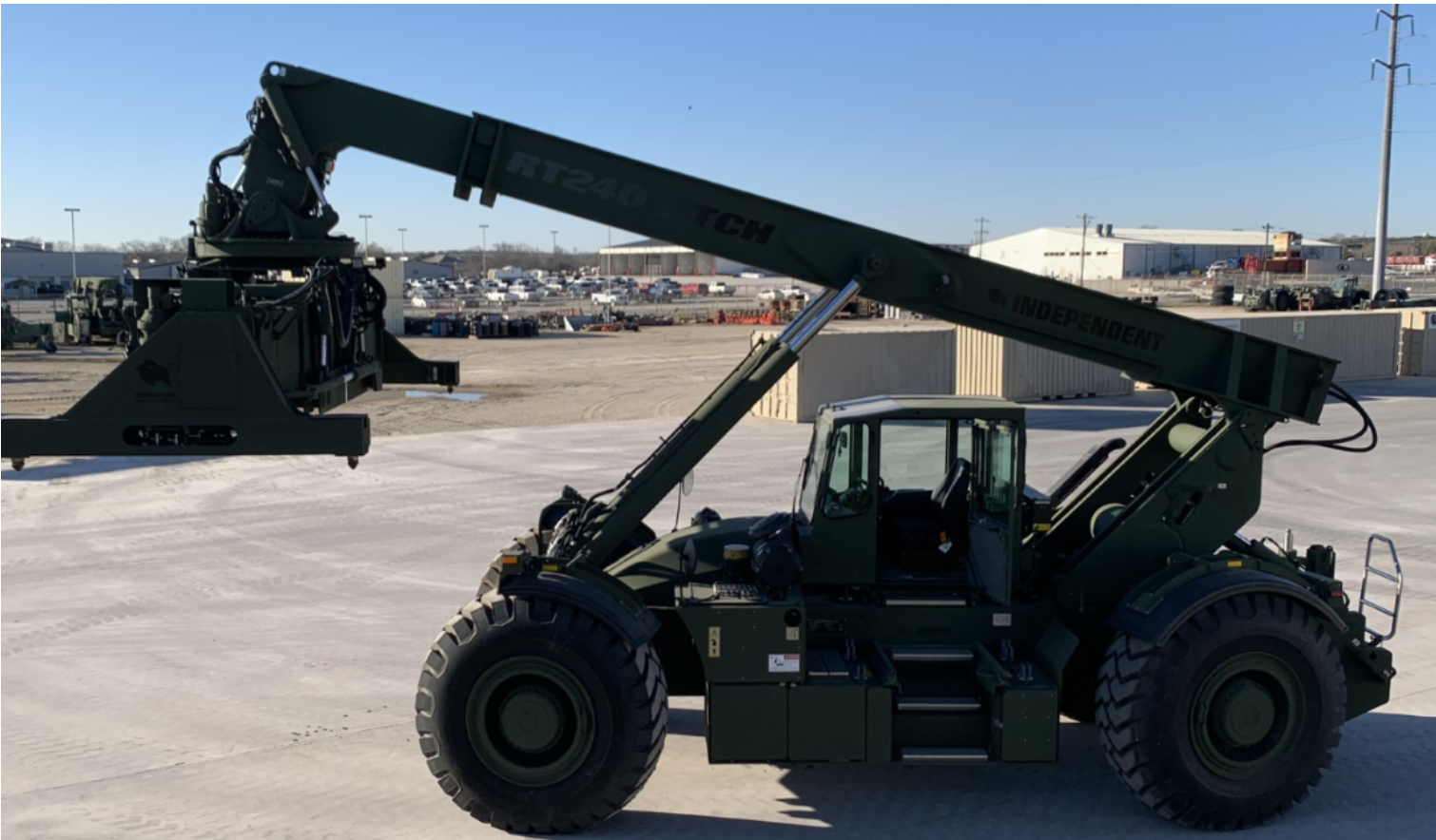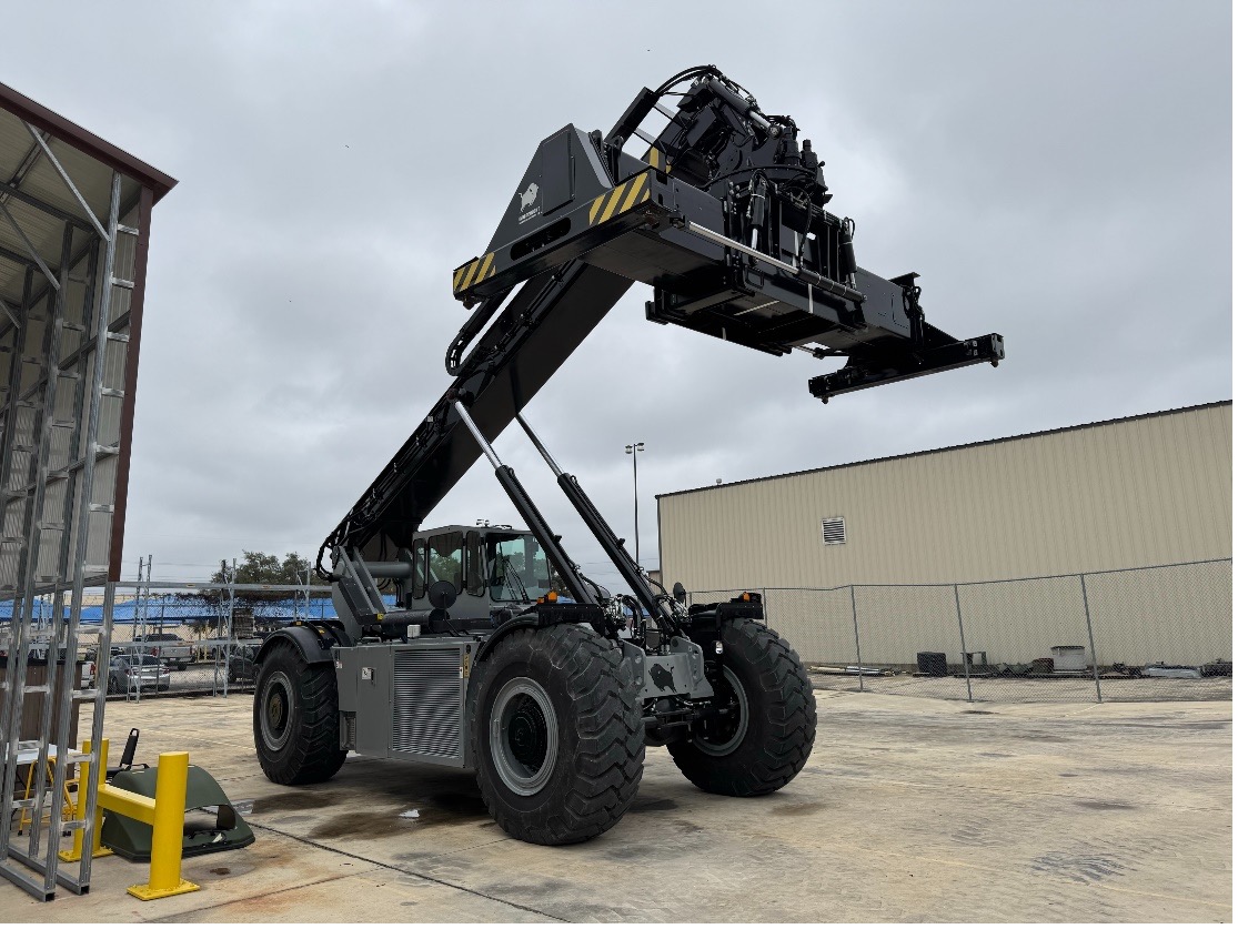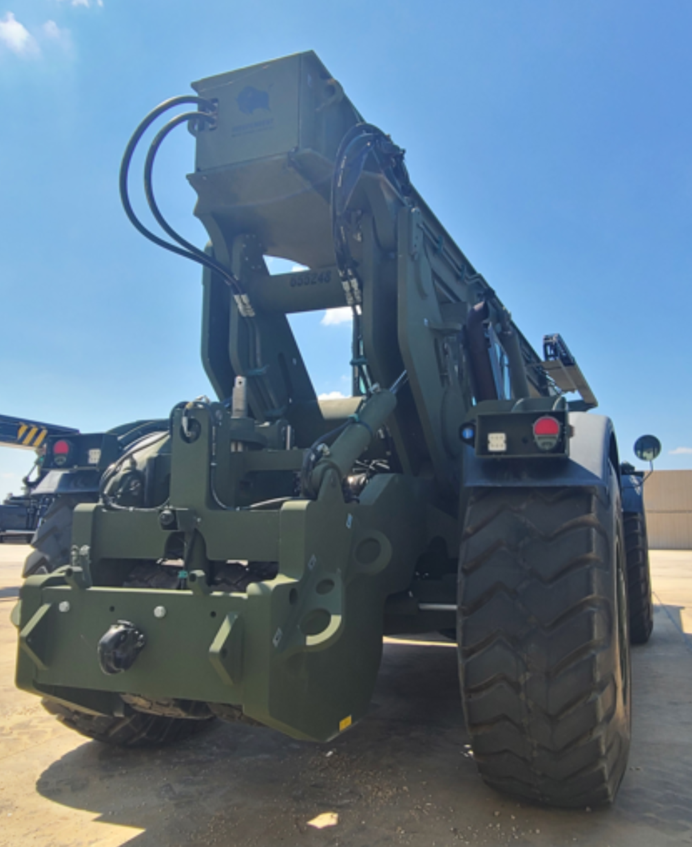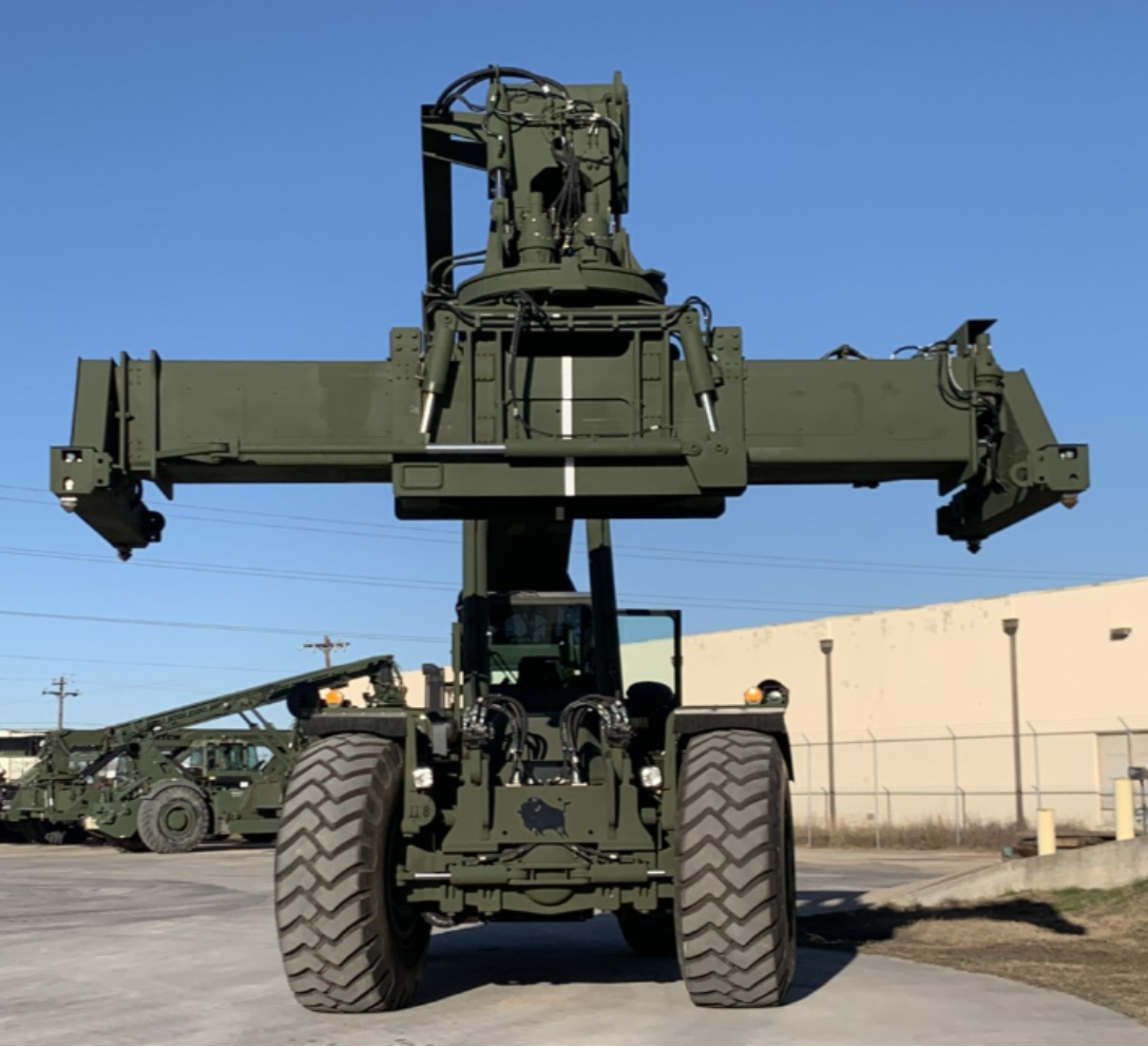 Master rough terrain logistics with the Rough Terrain Container Handler (RTCH), built for exceptional mobility, high throughput, and operator safety. Its unmatched mobility, low ground pressure, and year-round performance ensure smooth operation no matter the conditions. Easily transportable by air, road, rail and sea, this workhorse is ready for any logistical challenge. Experience the ultimate in container handling with the one-of-a-kind Rough Terrain Container Handler.